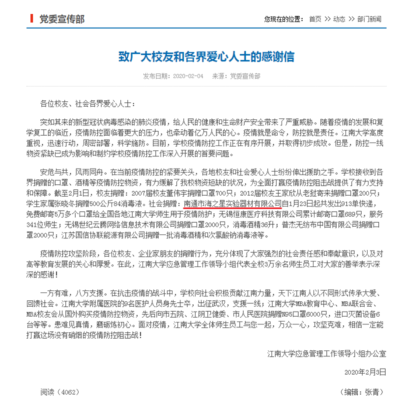 江南大學實驗物資協(xié)議供應商選定結果公示(JDFWZB2020002)